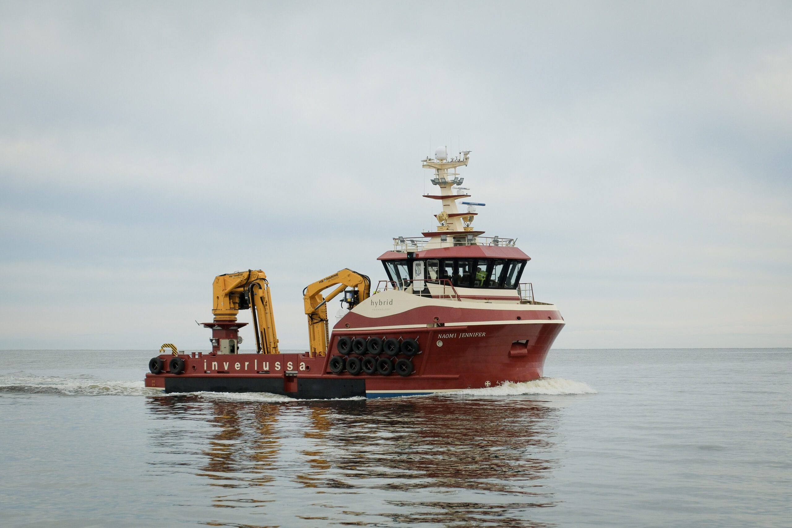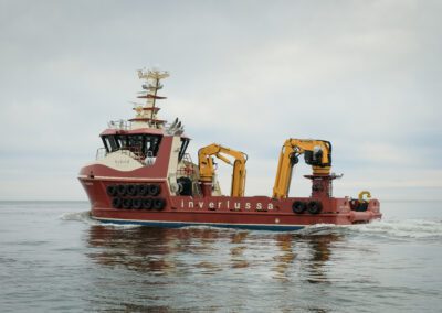 The vessel named ‘Naomi Jennifer’, has been designed to meet high environmental and operational standards, incorporating modern hybrid technology, increased lifting capability, and as is standard with Inverlussa vessels, accommodation built to a very high standard. ‘Naomi Jennifer’ is fitted with IMO Tier 3 compliant engines supported by a hybrid system that can store electrical energy for use during operations. This contributes to reduced fuel consumption, lower emissions, and quieter running.